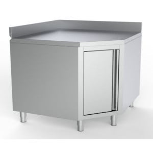 Die Konfiguration dieses Schranks mit einer Breite und Tiefe von 1000x600 mm bietet eine optimierte Arbeitsfläche und ermöglicht eine effiziente Platzierung in Ecken, wodurch der Platzverlust minimiert wird. Die Hinzufügung einer Aufkantung ist strategisch; sie schützt die Wände vor Spritzern und erleichtert die Reinigung, was ein unbestreitbarer Vorteil für die Aufrechterhaltung der Hygiene ist.