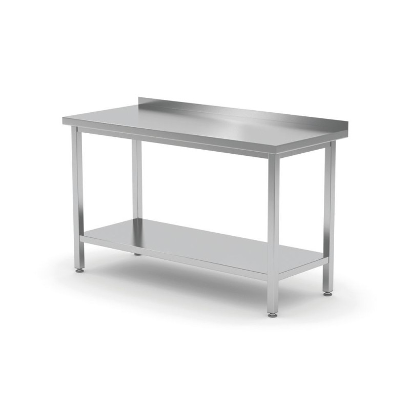 The design of the table, with a length of 1600 mm and a depth of 700 mm, offers a spacious work surface for food preparation, while its standard height of 850 mm ensures an ideal ergonomics, allowing comfortable work and optimizing productivity. The absence of a backsplash increases the versatility of placement of the table in any part of your kitchen, thus avoiding any restrictions due to walls or other obstacles.