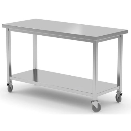 Ideal for professional kitchens, this mobile table will integrate perfectly into different environments, whether for food preparation or as an additional station during intense services. Offering both resistance and adaptability, this model will quickly become a central element in the daily management of culinary tasks.