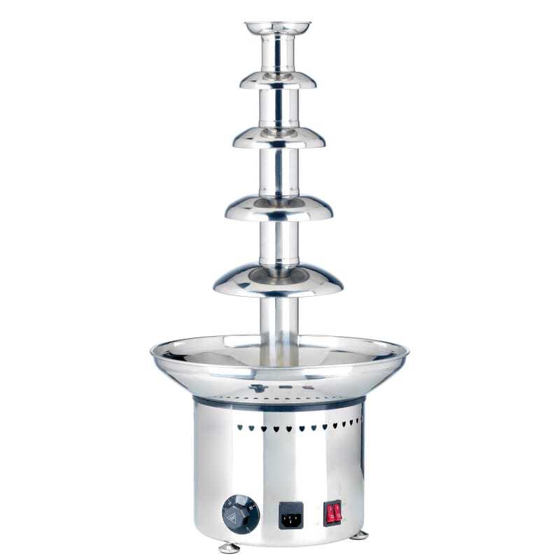 Idéale pour les professionnels de la restauration, cette Fontaine à Chocolat dispose d'une contenance de 2,5 Kg. Conçue en acier inoxydable, elle est gage de robustesse et de durabilité. Elle possède une commande à manette et un témoin lumineux de contrôle. Le réglage de la température, quant à lui, se fait de manière continue et jusqu'à 68°C. D'autre part, cette fontaine à chocolat est munie d'un interrupteur marche/arrêt et de plaques inclinées amovibles lavables en machine. Elle est un véritable indispensable pour un événement réussi. En effet, elle vous permet de déguster des fruits frais avec un nappage de chocolat fondant et crémeux.