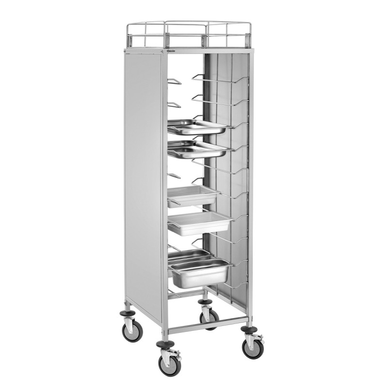 De beperkte omvang van de wagen, gecombineerd met zijn royale hoogte, maakt hem ideaal voor keukens waar ruimte kostbaar is maar waar snelheid en efficiëntie cruciaal zijn. Het geavanceerde vouwsysteem maakt het gemakkelijk om hem op te bergen wanneer hij niet in gebruik is, waardoor de beschikbare ruimte in de keuken wordt gemaximaliseerd.