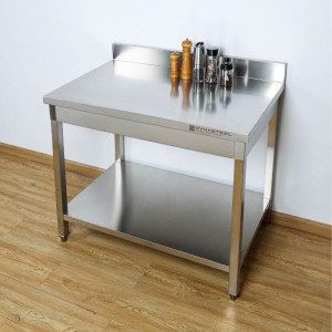 RVS Tafel met Achterwand en Plank - D 600 mm - L 1200 mm